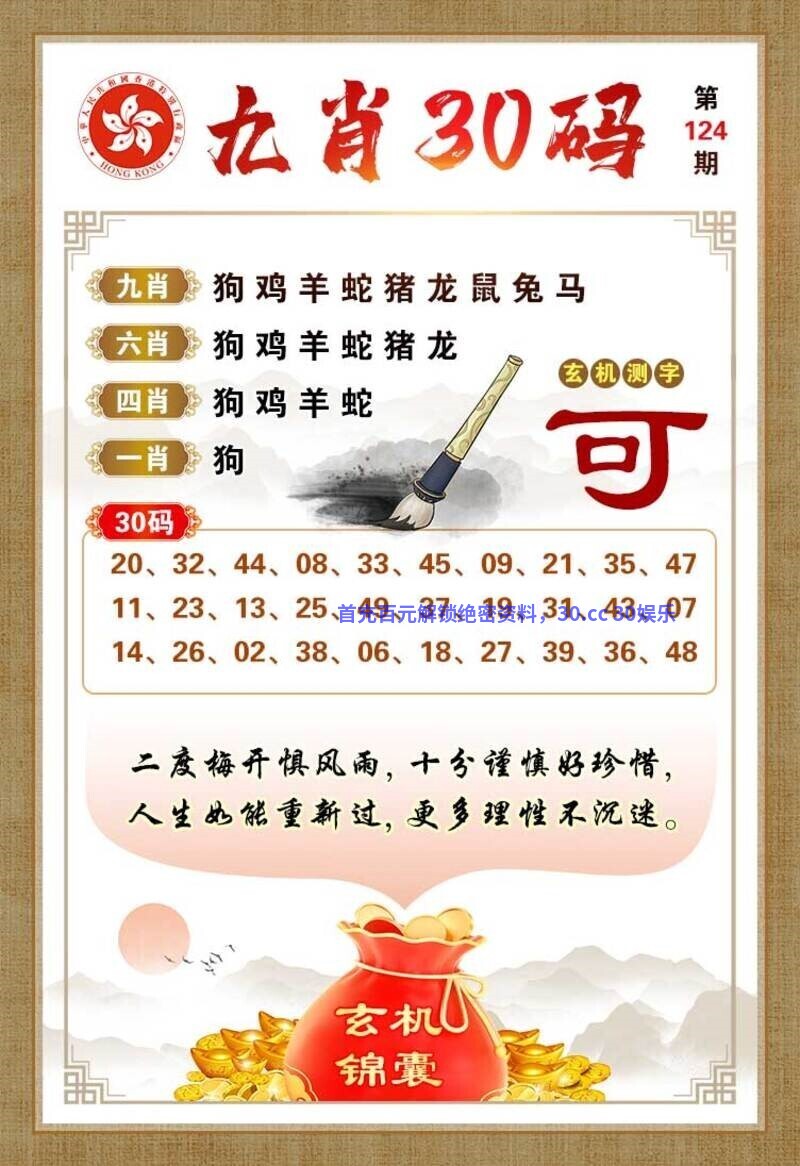 126期:九肖30码诗句。